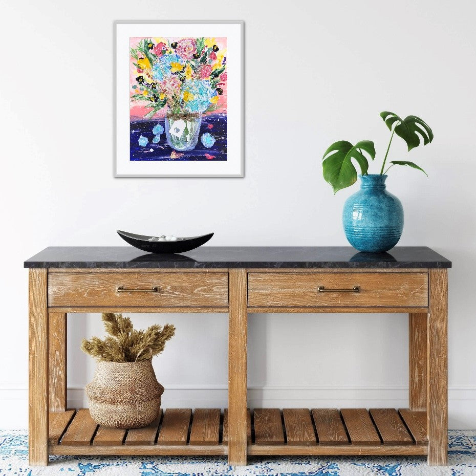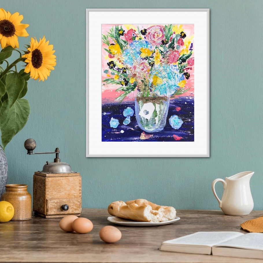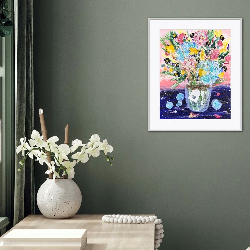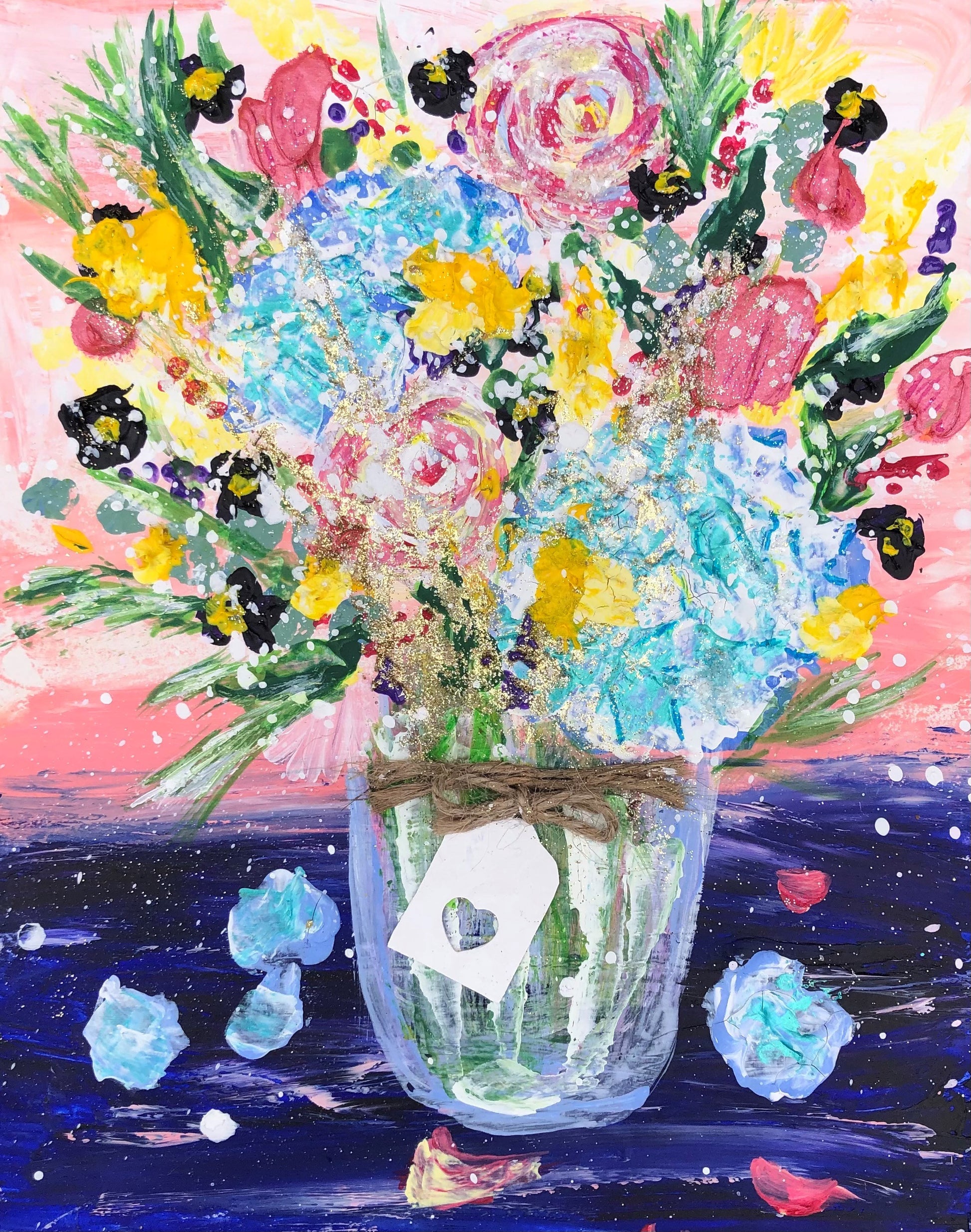 Tracey says, "One of two flowers in a vase paintings in this new collection, For All You Do is how I fee when I receive flowers for any reason or for no reason at all. The thought to do it, the selection of flowers and the joy they bring lifts my spirit. Capturing the feeling within these paintings is a way of having flowers that last forever!"
