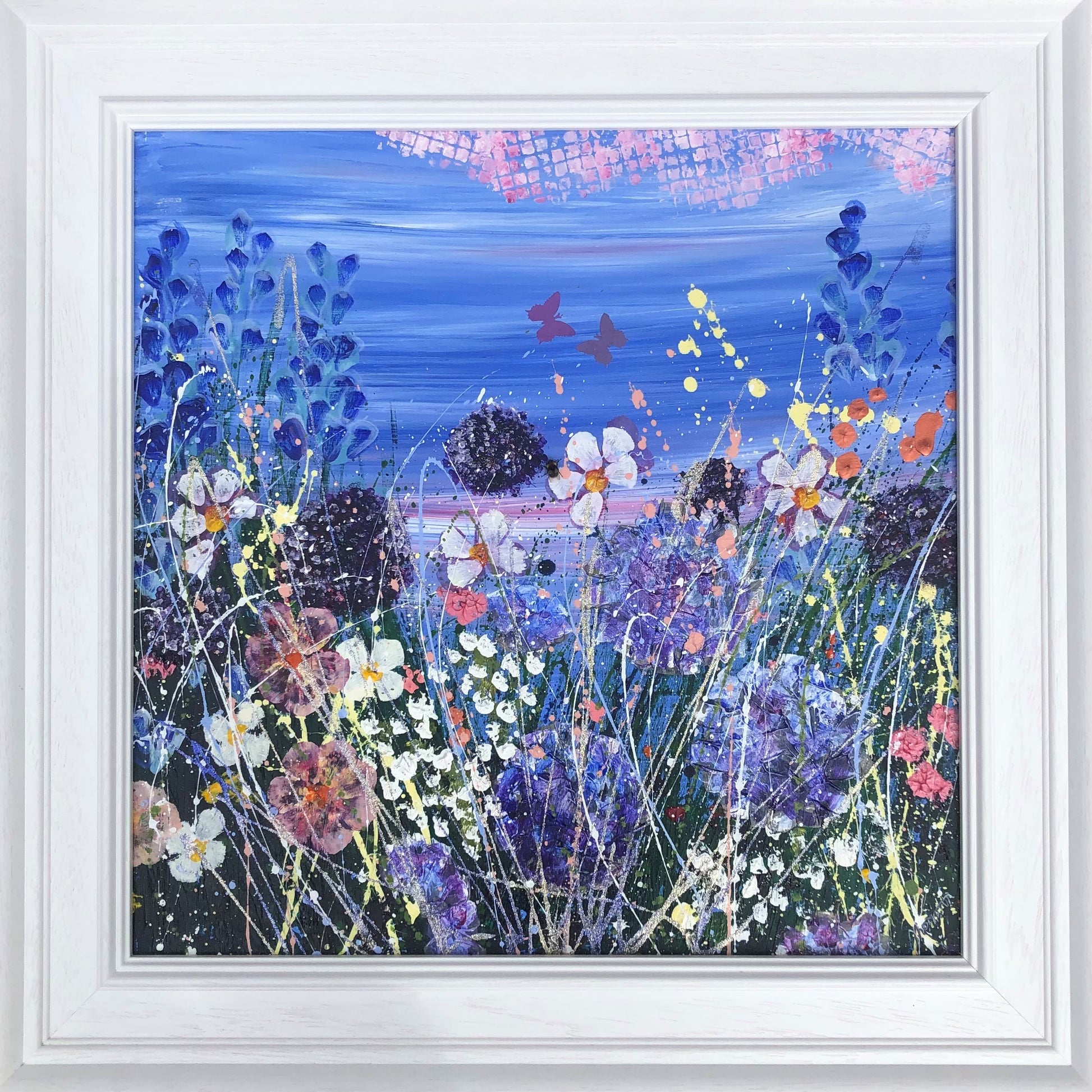 73.5cm x 73.5cm (framed in a moulded white frame)